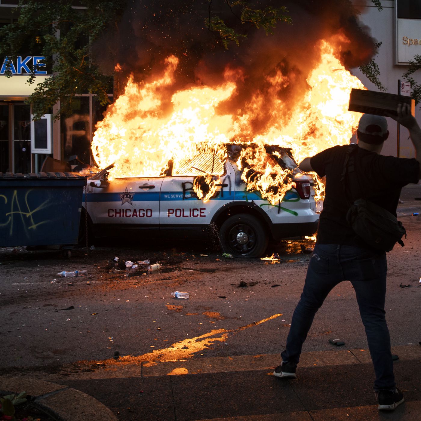 Police were attacked and vehicles set on fire. Looting was rampant