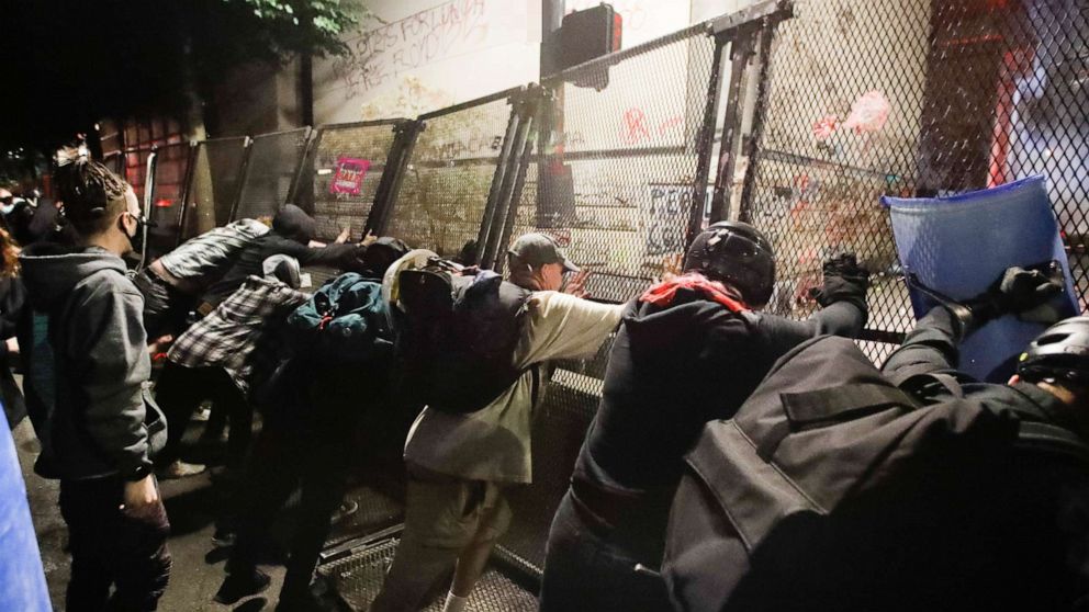 Police in Portland, Oregon, declared that a demonstration turned into a "riot" early Sunday when protesters breached a reinforced fence around the Mark O. Hatfield U.S. Courthouse in downtown Portland. Federal agents guarding the building deployed tear gas on the demonstrators, who officials alleged hurled projectiles and fireworks at the agents."